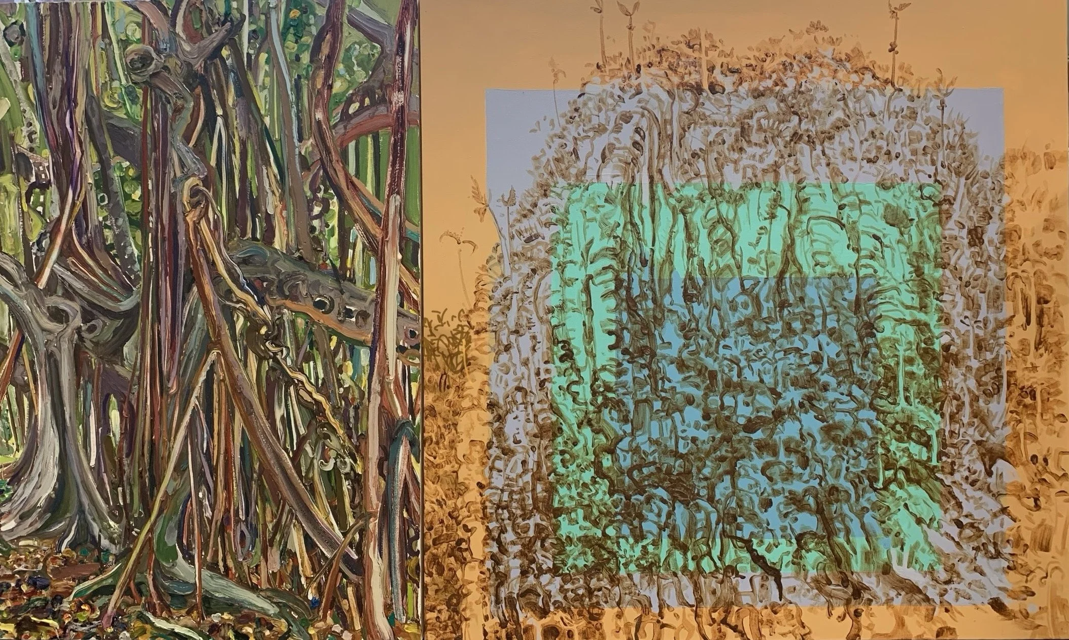 Works that combine my extensive American-based on-site painting practice with my new studio-based explorations of broader ideas of the Cuban landscape, migration and place/displacement- and offer a pictorial reconciliation between my Cuban and American identities.