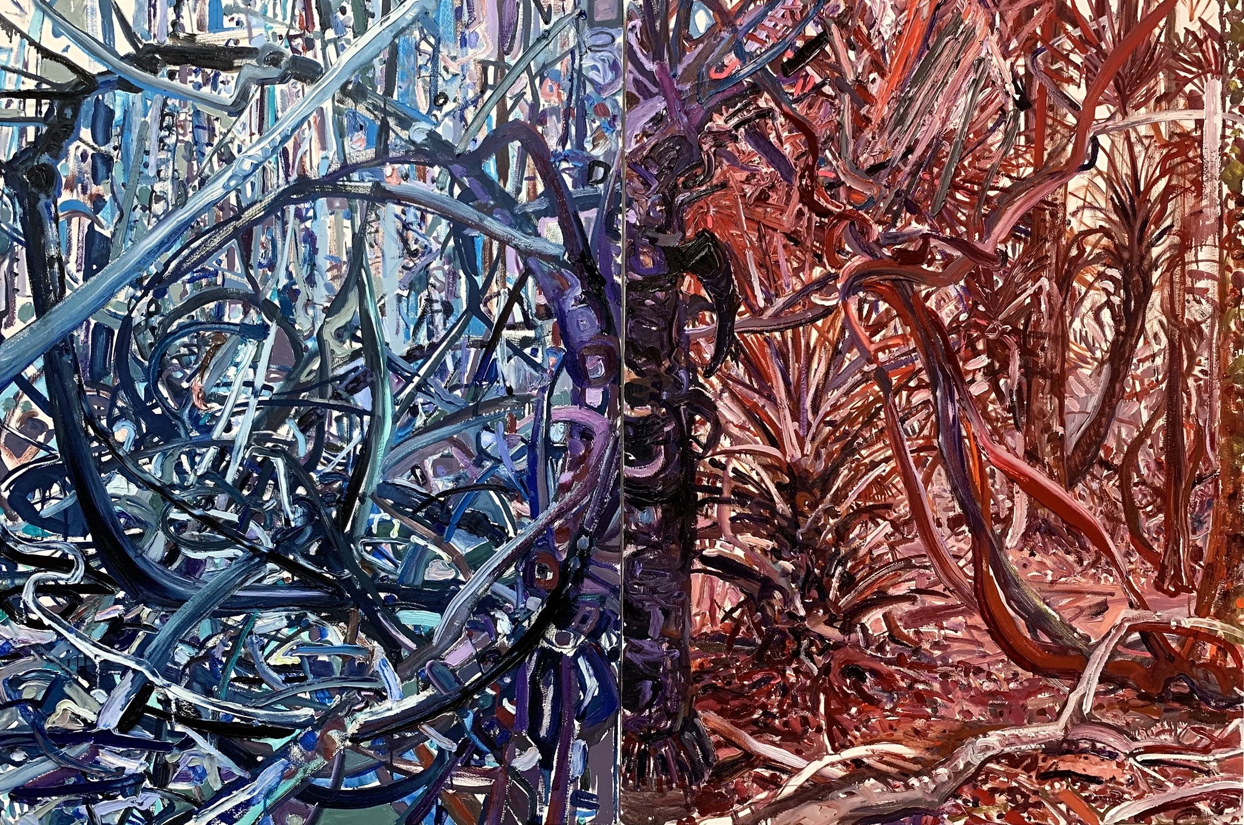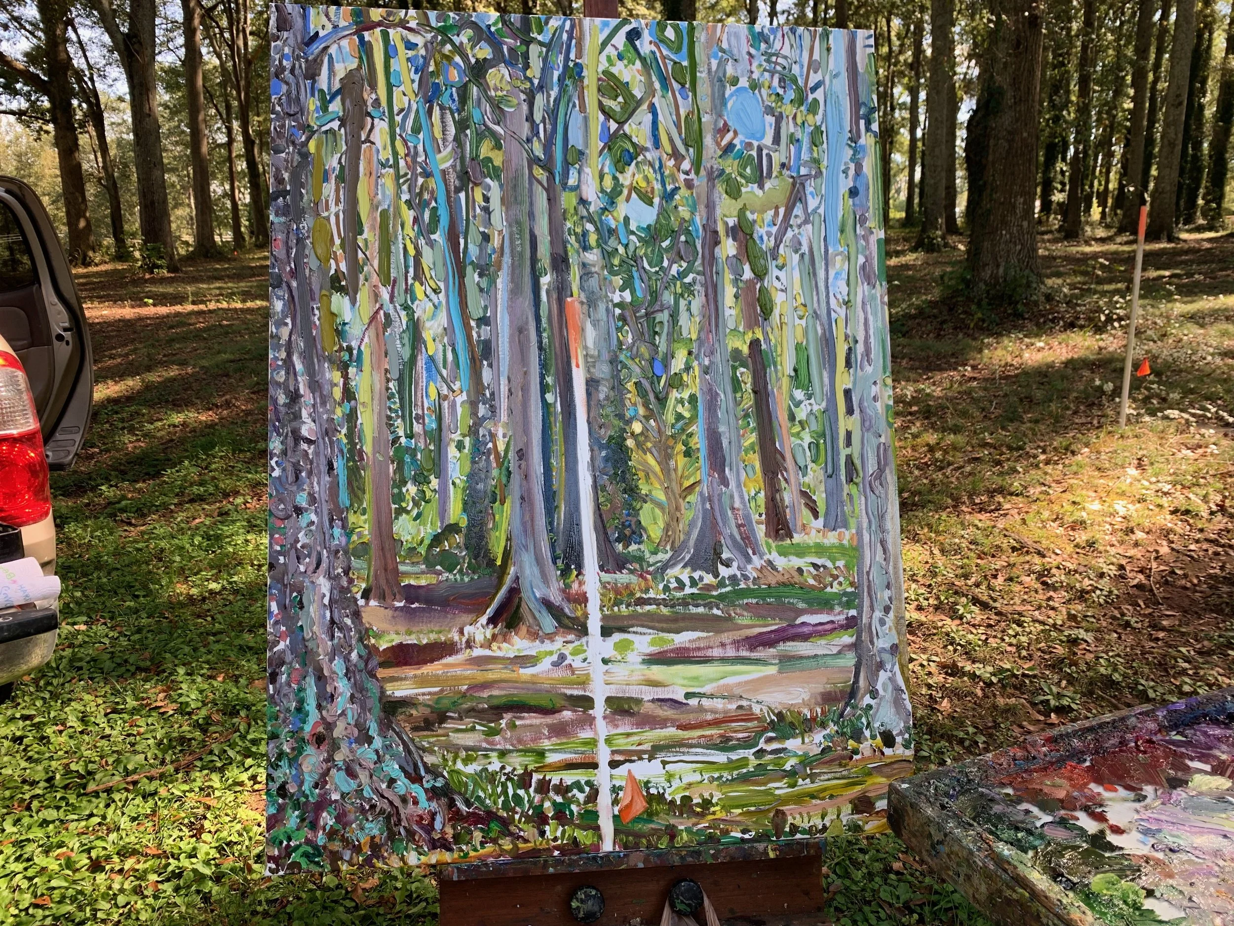 A more research-based approach to painting on-site (in the same manner as Cumulative Nurture series) where I select locations with historical/cultural significance in order to connect to a place as it is now while pointing back to often lost histories and people who inhabited them- often these works are presented with the researched history of each site..